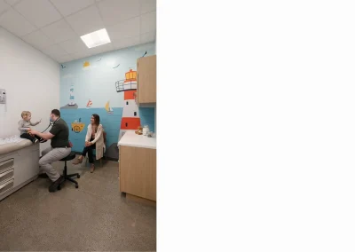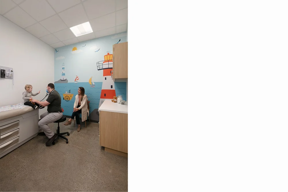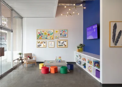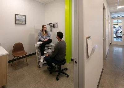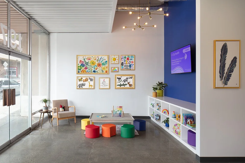 CityHealth aspired for a modern, industrial look for their new clinic location in Montclair Village. This led to architectural moves of exposing structural columns, maximizing the ceiling height, and polishing the existing concrete floors. When considering the flow of staff and patients, a circular layout of exam rooms and back-of-house spaces provided efficiency and privacy to both user groups. Lastly, the design team integrated bright pops of color, transforming this once vacant storefront into the neighborhood’s newest health clinic.